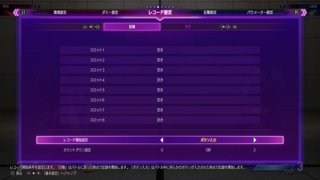 トレーニングモードには「レコード設定」という機能があり、これを使えばダミーに好きな行動を取らせることが出来ます。