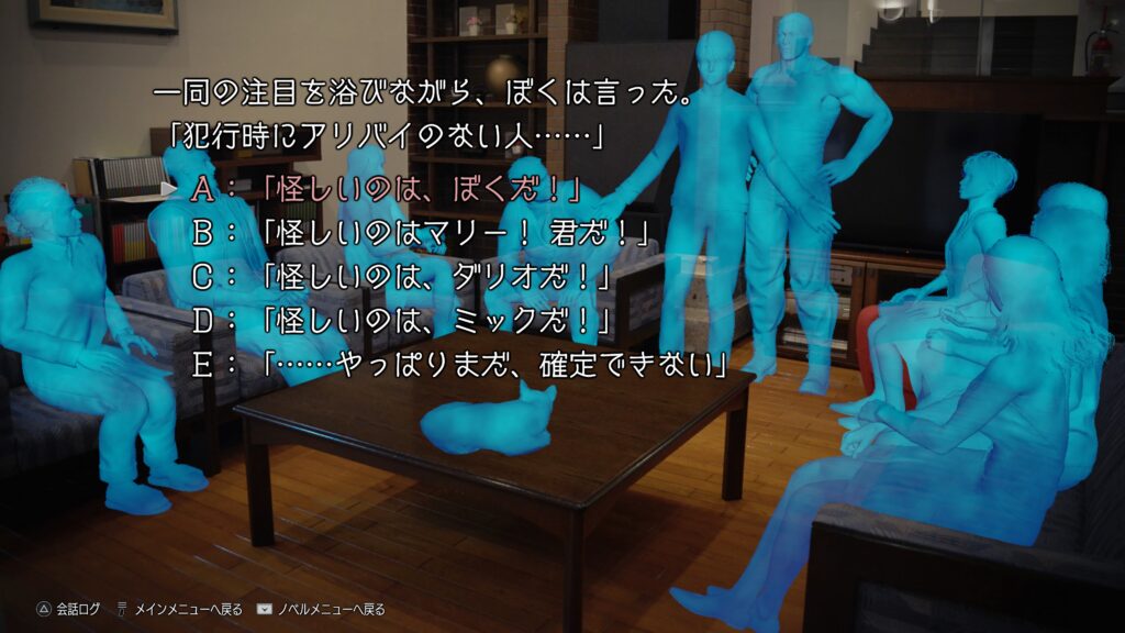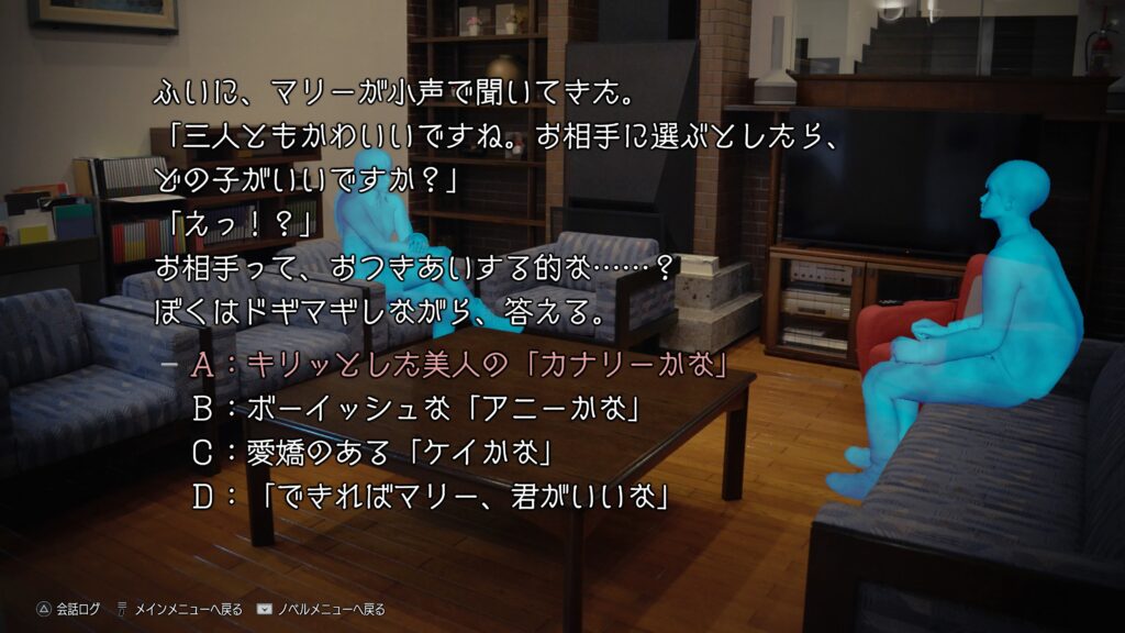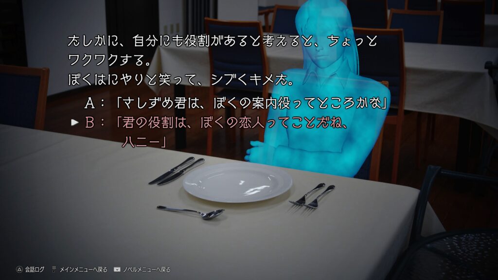 このコラボはノベルゲームとして進めていくことになります。なので、途中の選択肢を選ぶことにより進めていくことができます。