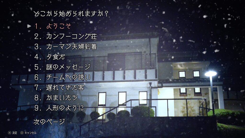 今回は目次毎に続きから始められるということもあるので、目次ごとに選択肢を書いていきます。
