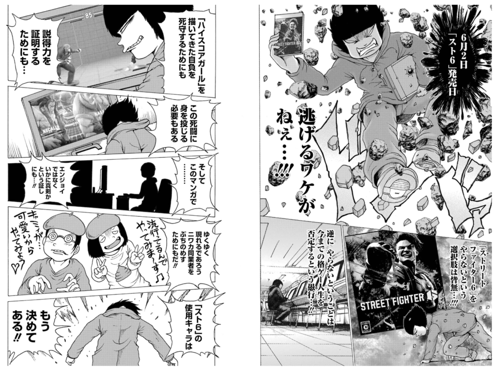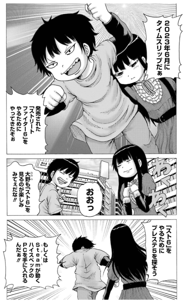 また「ハイスコアガール」の主人公ハルオと大野も何故かスト6の発売した現代に出現し読みやすい作品になっています。