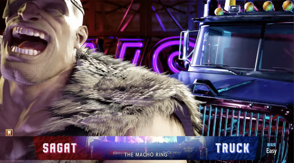 サガットは、足とか手が長くて攻撃が当てやすく、攻撃力も高くて、すぐにトラックをボコボコにできたんだぜ!