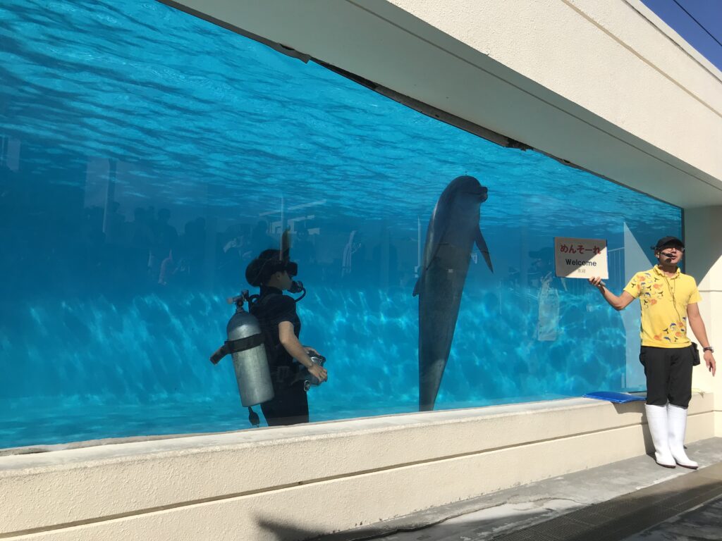 同時期に沖縄に来たもう一頭のミナミバンドウイルカ「ムクちゃん」が居る事をご存じですか?オキちゃんの派手なイルカショーとは別の”ダイバーショー”を担当しています。