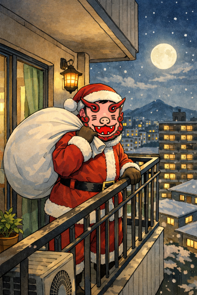 「もう禁煙したら」ベランダにいる僕にいつもの小言だ。「入院するような病気でもしたら止めるわ」その気のない僕の返事だ。「それより、そろそろクリスマス準備せなあかんな」と、話を逸らしながらベランダを見渡す。僕の思惑に気付きながら、妻も返す。「そやねぇ、サンタさんのプレゼントは煙草何日分やー」と、窓を閉める。
